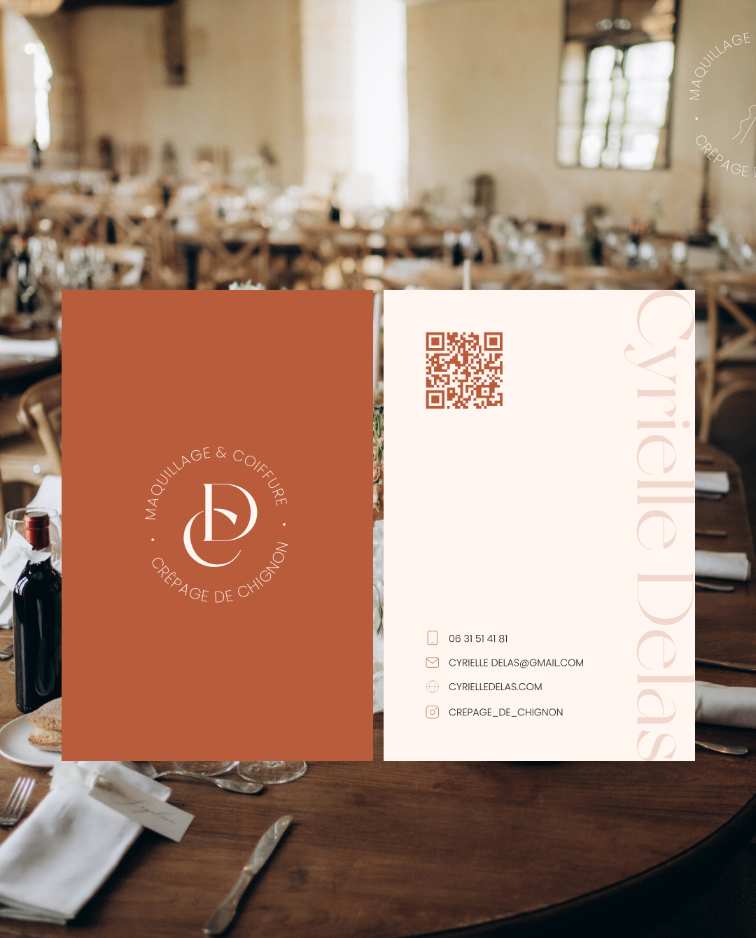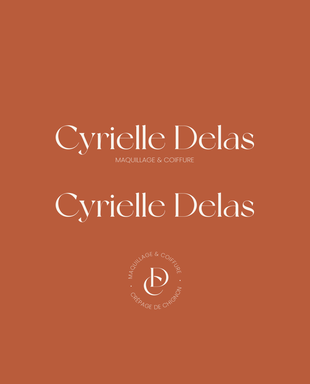 Pour Cyrielle Delas, maquilleuse & coiffeuse professionnelle, nous avons imaginé une identité élégante, haut de gamme et raffinée, à l’image de son travail. Des couleurs sophistiquées, une typographie délicate et des détails subtils pour refléter son talent et son expertise.